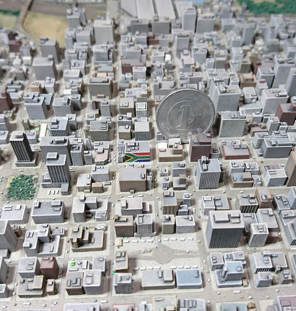 ワンコロ Ce3kジオラマ制作中 ヨハネスブルグの街をよく見ると壁に南アフリカ共和国の国旗を描いた建物があります どうもデパートらしい ジオラマも同じように再現 しかしよく我が家に国旗のデカールがあったな Johannesburg